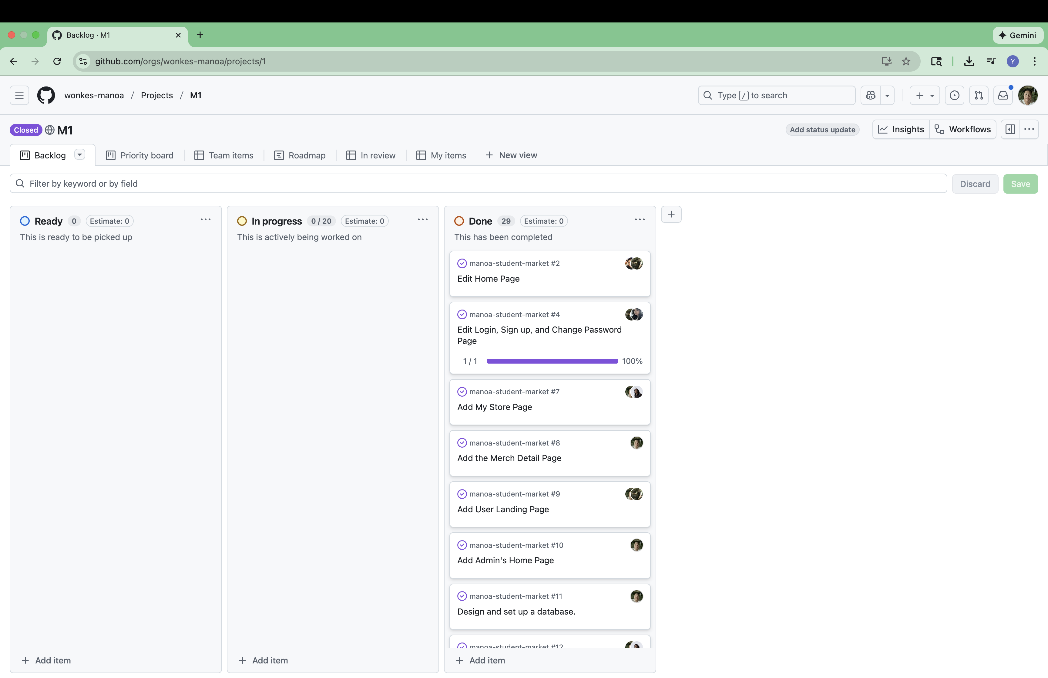 Milestone 1 was managed using Wonkes GitHub Project Board M1.