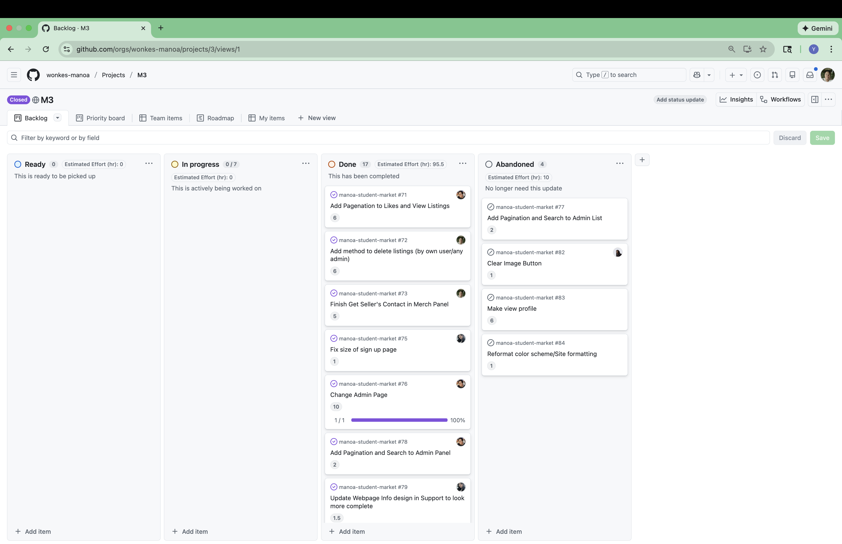 Milestone 3 was managed using Wonkes GitHub Project Board M3.